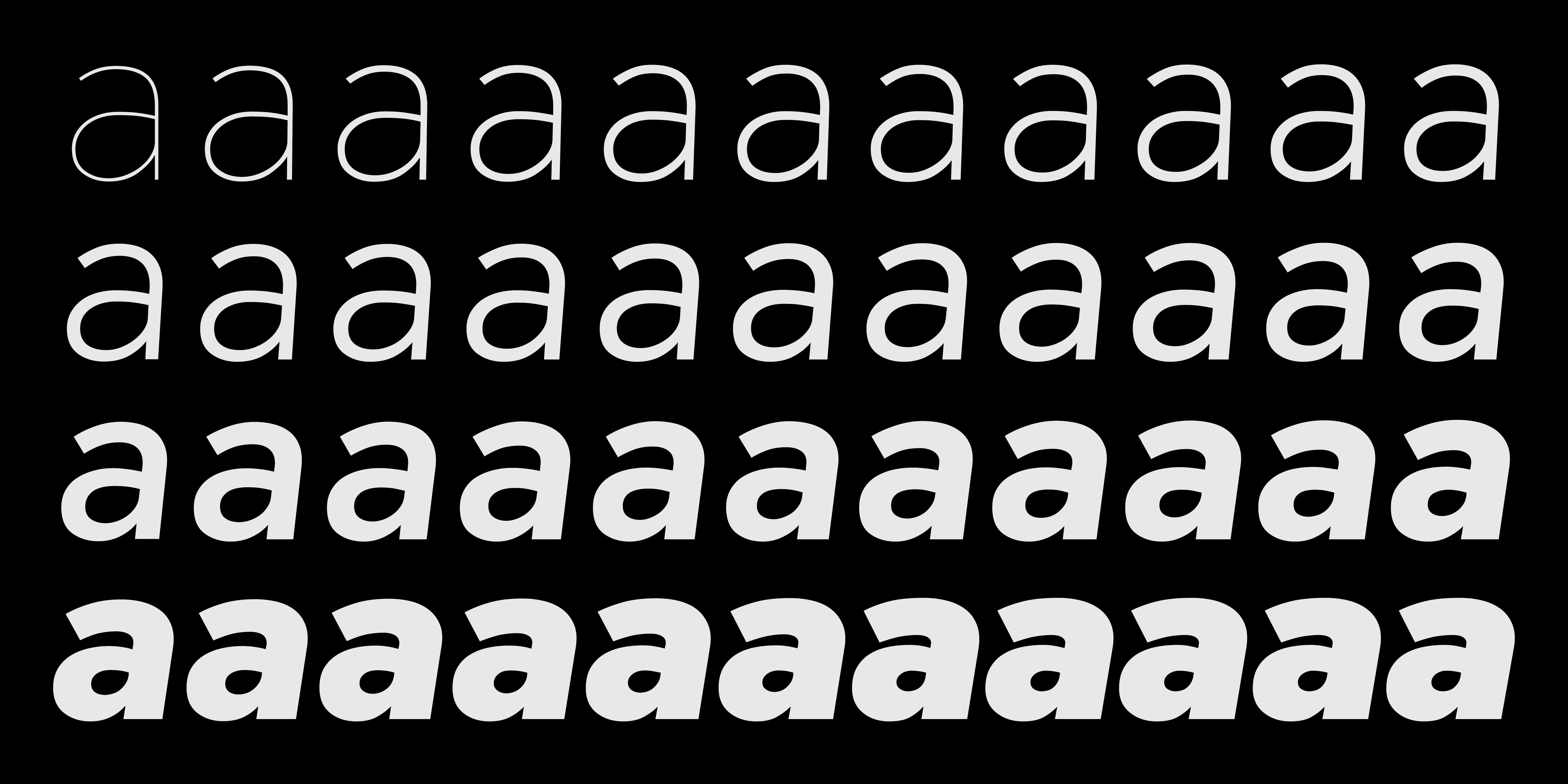 Ultra Thin Ultra Thin Oblique Thin Thin Oblique Light Light Oblique Regular Oblique Medium Medium Oblique SemiBold SemiBold Oblique Bold Bold Oblique ExtraBold ExtraBold Oblique Black Black Oblique Ultra Black Ultra Black ObliqueAsty Variable