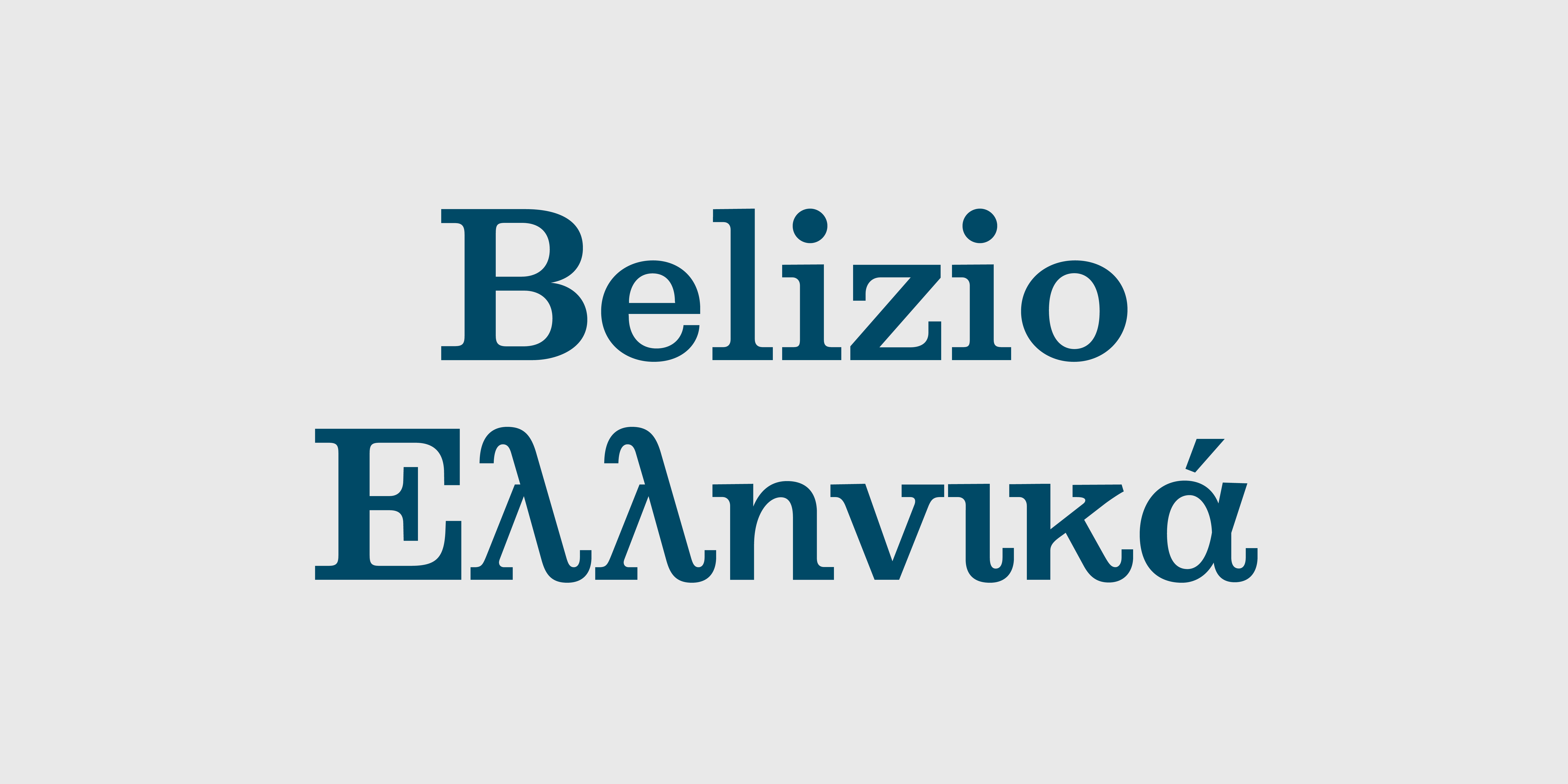 Η Belizio σχεδιάστηκε από τον David Berlow και έχει βασιστεί στην Egizio τη γραμματοσειρά που σχεδίασε ο Aldo Novarese. Το κίνητρο για την εταιρία Nebiolo που ανέθεσε το σχεδιασμό, ήταν να ανταγωνιστεί τη δημοφιλία που είχε εκείνη την εποχή (1955), η γραμματοσειρά Haas Clarendon των Hoffmann και Eidenbenz, ενός άψογου επανασχεδιασμού πάνω στο κλασικό αγγλικό τυπογραφικό πρότυπο. Ο Aldo Novarese, υπήρξε από τους πρώτους σχεδιαστές που μελέτησε και πρότεινε ένα πραγματικό πλάγιο σχέδιο για το ύφος της Clarendon. Ελληνική έκδοση Παναγιώτης Χαρατζόπουλος