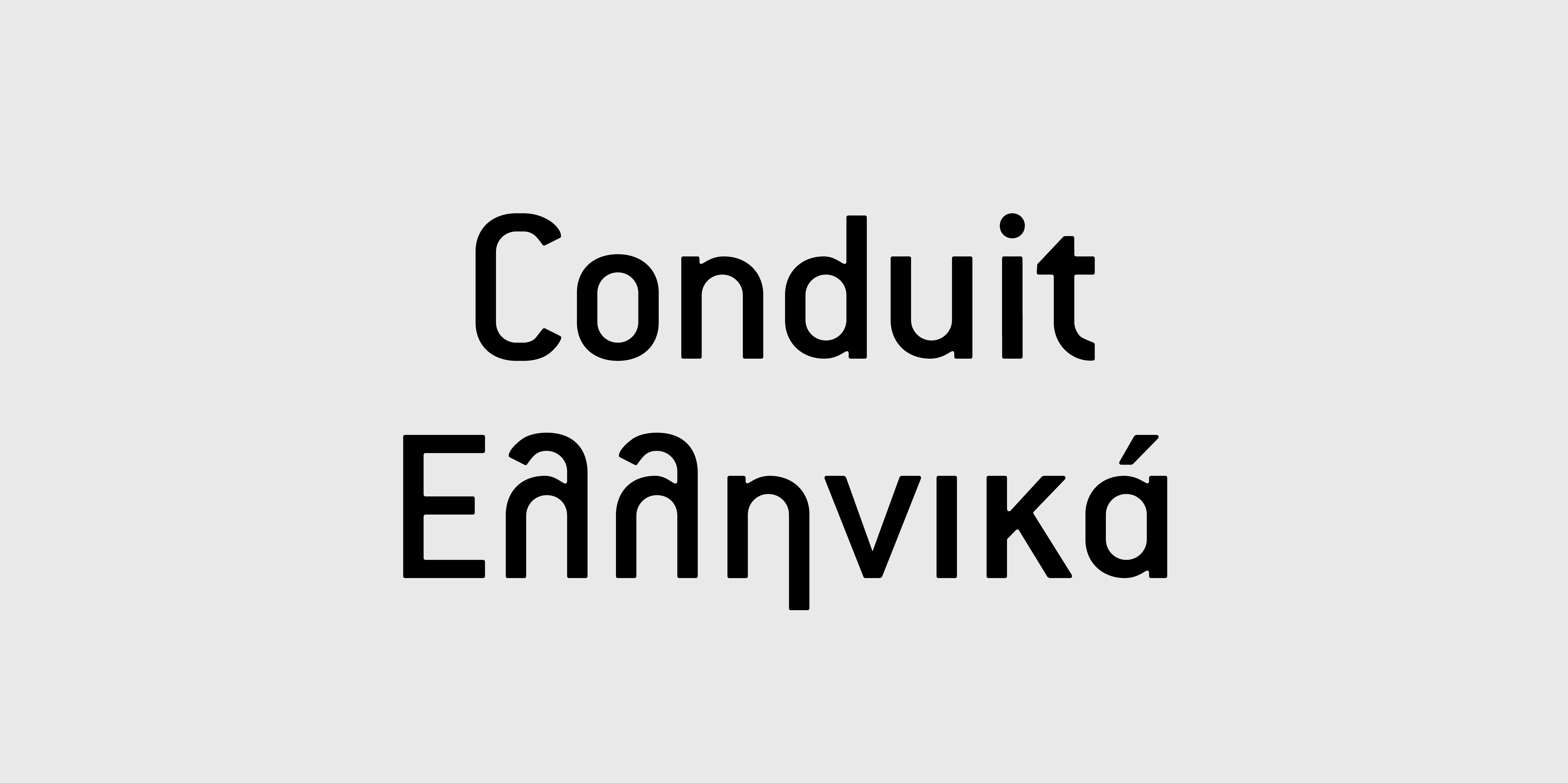 Βασισμένη σε γράμματα επιγραφών φτιαγμένων από ερασιτέχνες. Ο σχεδιαστής πήρε τις απλές αλλά παράξενες φόρμες γραμμάτων και προσέθεσε την εμπειρία του πάνω στο σχέδιο και τις αναλογίες παραβιάζοντας στην πορεία σχεδόν όλους τους κανόνες. Οι φόρμες των γραμμάτων σχεδιάστηκαν με βάση έναν κάνναβο με όλες τις άκρες και τις γωνίες στρογγυλεμένες. Μετά από λίγες οπτικές διορθώσεις δημιουργήθηκε η ITC Conduit, μια σχετικά στενή, τετράγωνη και σαφώς αναγνώσιμη ισόπαχη γραμματοσειρά. Σχεδιαστής Mark Van Bronkhorst, Ελληνική έκδοση Δημήτρης Αρβανίτης