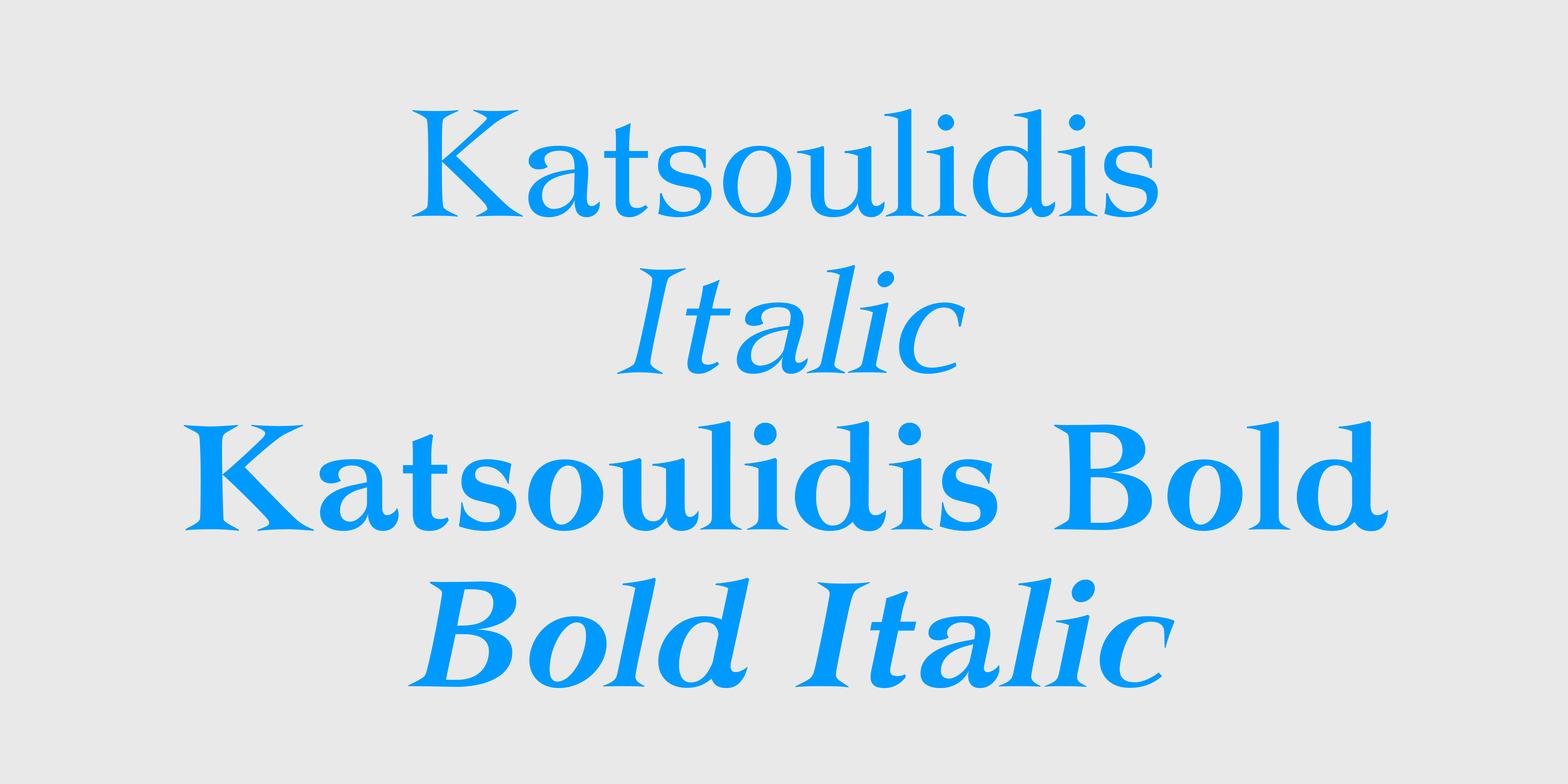 Πρόκειται για εξέλιξη των Ελζεβίρ όπου κυριαρχεί η καμπύλη σε βάρος της ευθείας. Ο οφθαλμός των πεζών στοιχείων έχει μεγαλώσει σημαντικά κι αυτό κάνει τα γράμματα περισσότερο ευανάγνωστα από μικρές στιγμές. Η οικογένεια Κατσουλίδης παρουσιάστηκε μαζί με την οικογένεια Απολλώνια έπειτα από μελέτη που άρχισε το 1986, στα πλαίσια ερευνητικών προγραμμάτων των ΤΕΙ, η οποία μαζί με το σχεδιασμό διήρκεσε μέχρι το 1989. Η νέα έκδοση που κυκλοφορεί από το 2010 είναι επανασχεδιασμένη ενώ έχουν προστεθεί νέα σύμβολα και χαρακτήρες ώστε να υποστηρίζονται πλήρως το Western και Central European Character Set. Στη νέα έκδοση περιλαμβάνονται επίσης 4 είδη αρίθμησης (Lining, Tabular Lining, Old Style, Tabular Old Style). (Πληροφορίες από το βιβλίο του Τάκη Κατσουλίδη, «Το σχέδιο του γράμματος»).