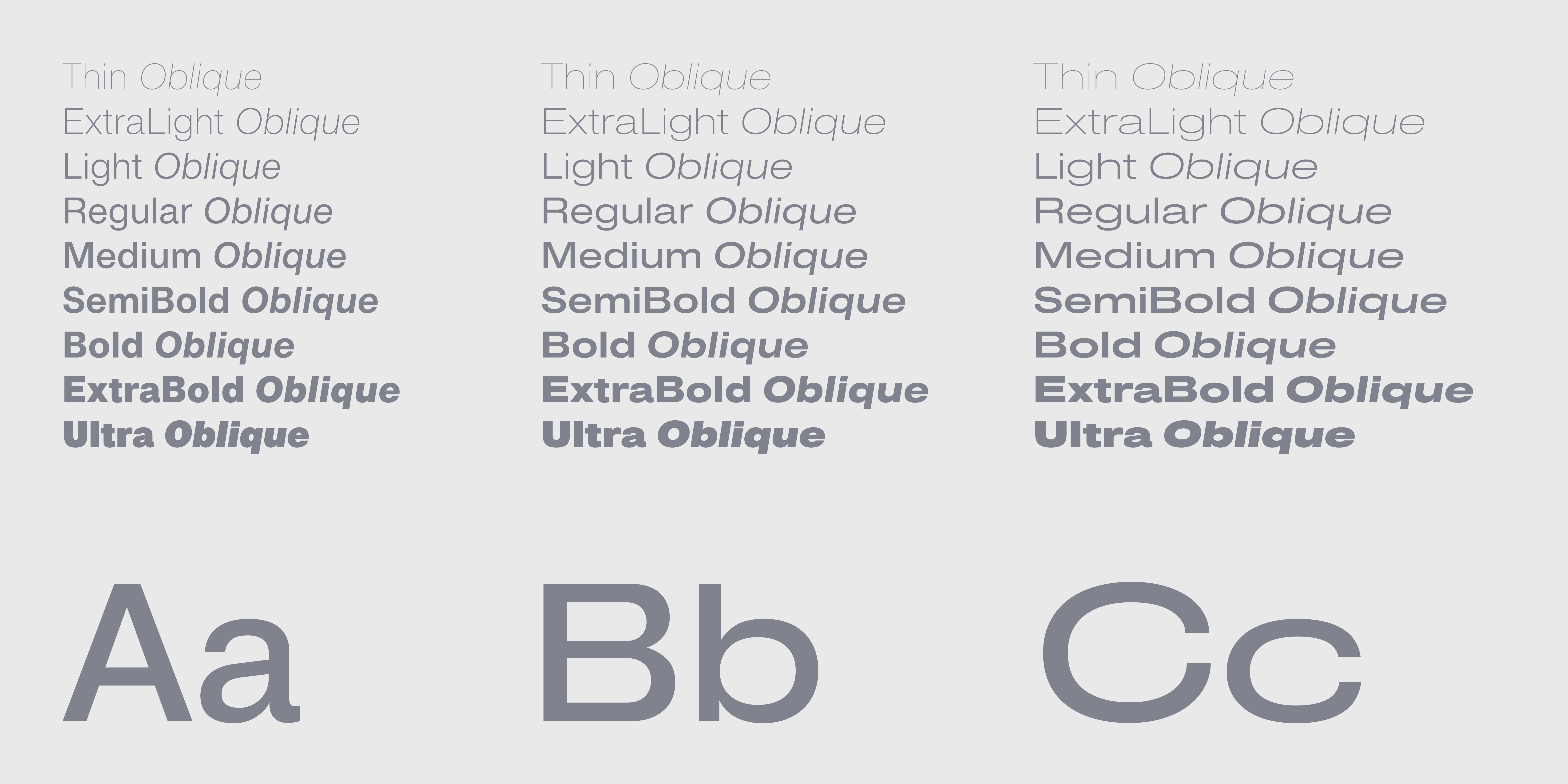 Thin Thin Oblique ExtLight ExtLight Oblique Light Light Oblique Regular Regular Oblique Medium Medium Oblique SemiBold Oblique SemiBold Bold Bold Oblique ExtBold ExtBold Oblique Ultra Ultra ObliqueMod Grotesk Expanded