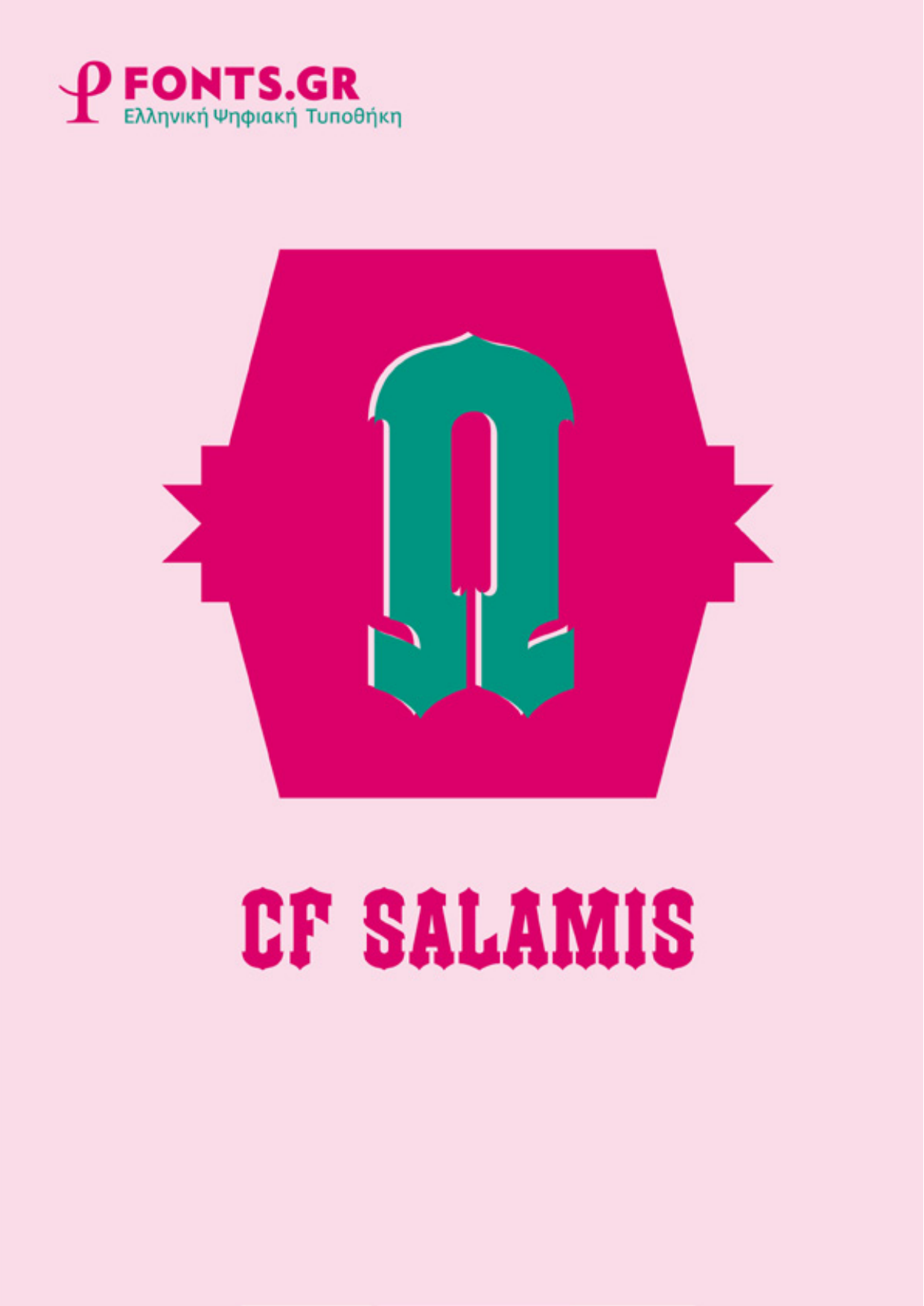 CF Salamis is an uppercase display font based on the iconic woodtypes used on the "for rent" and "for sale" ads in Greece. The types relate to the Tuscan Pointed woodtype style and are a unique greek version of this kind. CF Salamis comes in two versions, regular and reversed, which also contains a set of decorative endpoint ornaments.